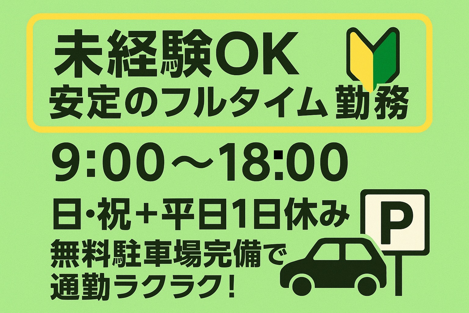 勤務時間 | 9:00~18:00(実働8時間00分) 休憩60分(12:00~13:00) ※時差休憩あり ※基本、残業なし! ※人気の日勤固定勤務 |