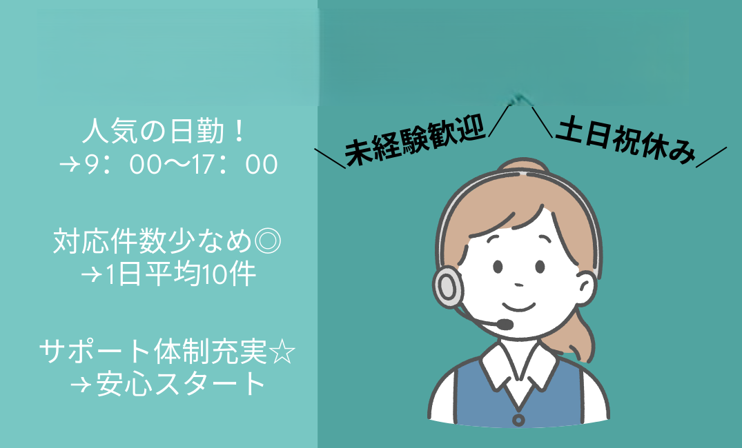 | 対象となる方 | ・未経験だけど人と関わるのがお好きな方♪ ・事務経験者(パソコンの基本操作と電話対応が出来る方) ・コールセンター、ヘルプデスク業務などの経験者、歓迎♪ ・ブランクある方歓迎♪ ・月曜日~金曜日まで週5日勤務可能な方♪ ・長期安定のお仕事を探している方♪ ・未経験歓迎、無資格歓迎♪ ・学歴不問、転職回数不問♪ ・ライフワークバランス重視の方♪ |
