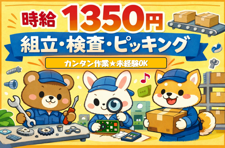 新着[派遣]時給1,350円!職場見学をして選べる⇒ユニットの組立・検査・ピッキング♪
