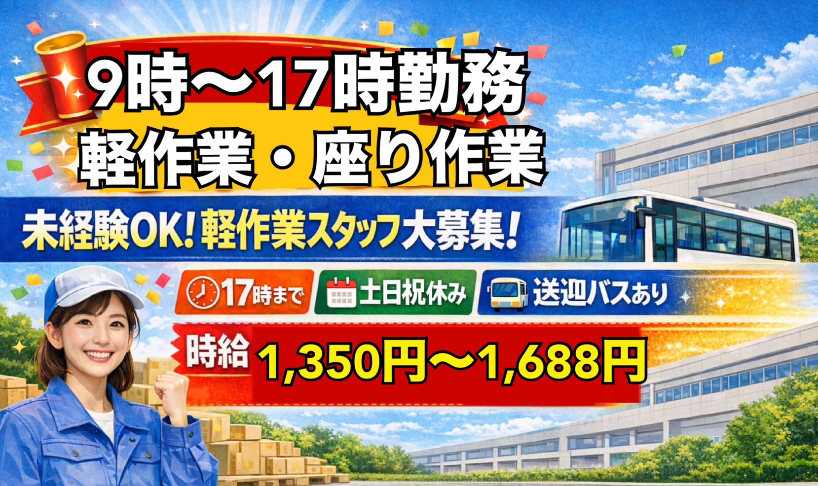 新着[派遣]9時勤務開始♪家庭と両立◎時給1,350円×座り作業×人気の土日祝休み!
