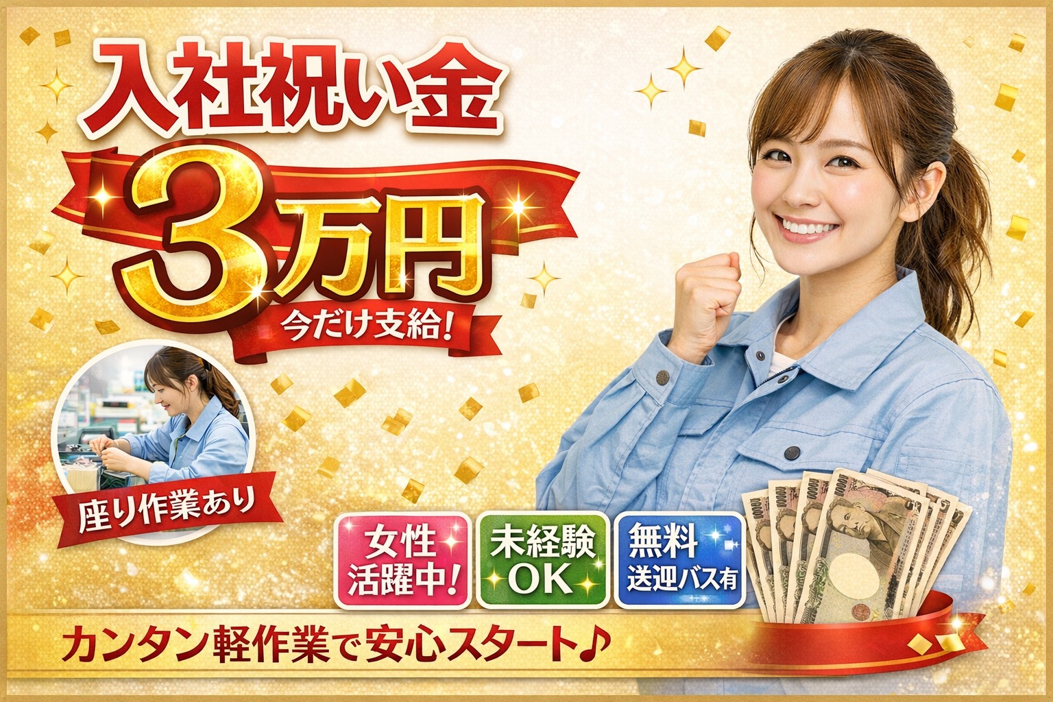 新着[派遣]定着率◎未経験から始める軽作業|送迎あり|残業少なめ|祝い金3万円
