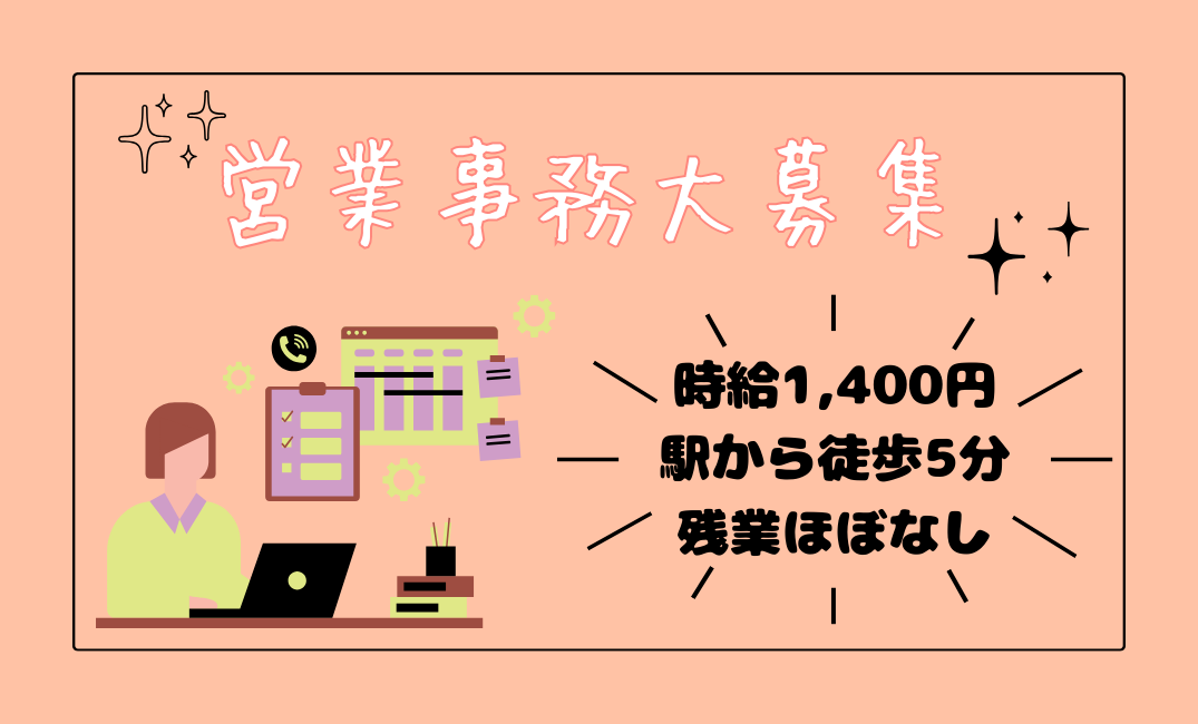 | 対象となる方 | ・事務経験のある方歓迎♪ ・人と話すことが好きな方歓迎♪ ・PCを使用した業務経験のある方歓迎♪ \年齢に関係なく、スキルを発揮できる職場で働きませんか?/ |