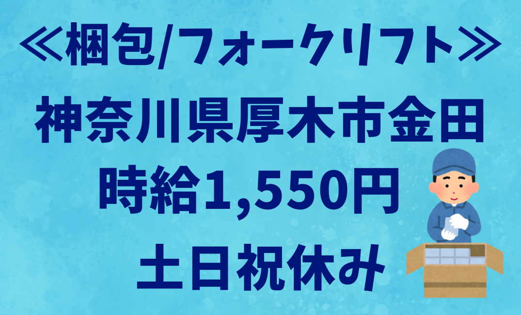 | 勤務地 | 【派遣先】神奈川県厚木市金田 小田急線 本厚木駅よりバスで15分 バイク、自転車通勤可能。 ※交通費月上限1万5千円まで支給致します。(例:定期代1万5千円) |