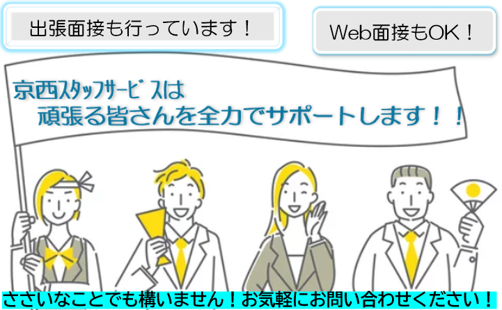| 交通費支給……有 | 京西スタッフサービスは、働く仲間を大切にします。 ◎入社日より健康保険組合、厚生年金、雇用保険、労災保険への加入 ◎定期健康診断・人間ドック、予防接種の補助も充実 ◎オフを充実させる保養施設、リゾート施設、スポーツクラブなどの利用が可能 ◎慶弔休暇、特別休暇制度あり |